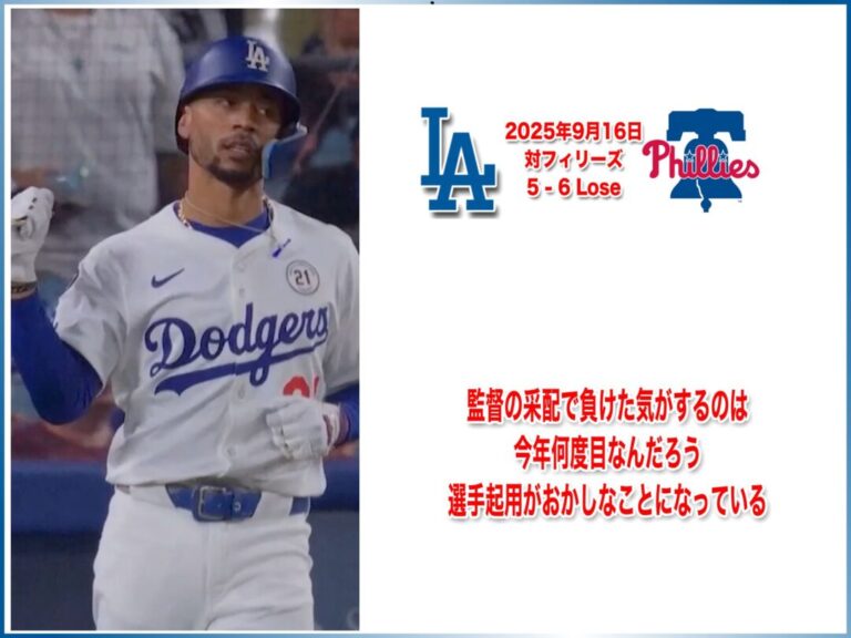 2025年9月16日 フィラデルフィアフィリーズ戦 5-6 Lose