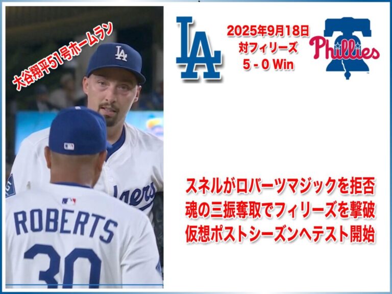 2025年9月18日 フィラデルフィアフィリーズ戦 5-0 Win