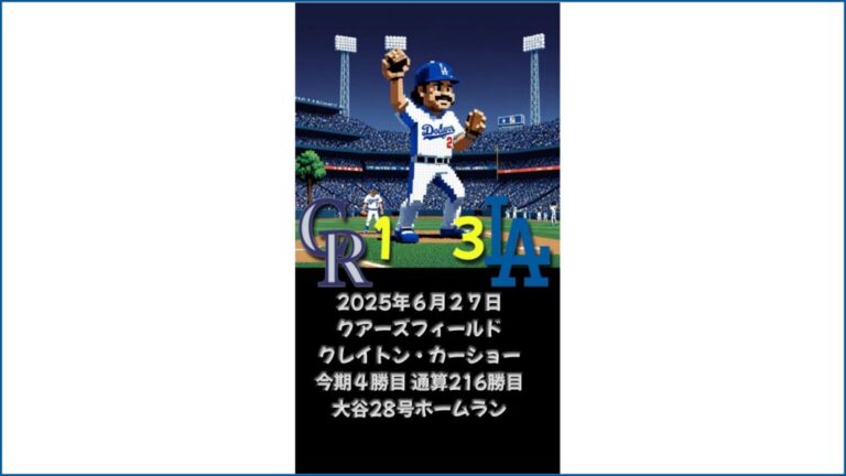 NATIONAL LEAGUE 2025年6月27日 コロラドロッキーズ戦 3-1 WIN