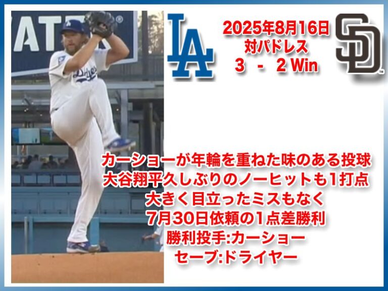 NATIONAL LEAGUE 2025年8月16日 サンディエゴパドレス戦 3-2 Win