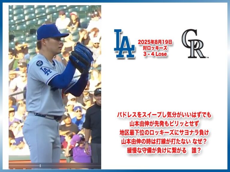 NATIONAL LEAGUE 2025年8月19日 コロラドロッキーズ戦 3-4 Lose