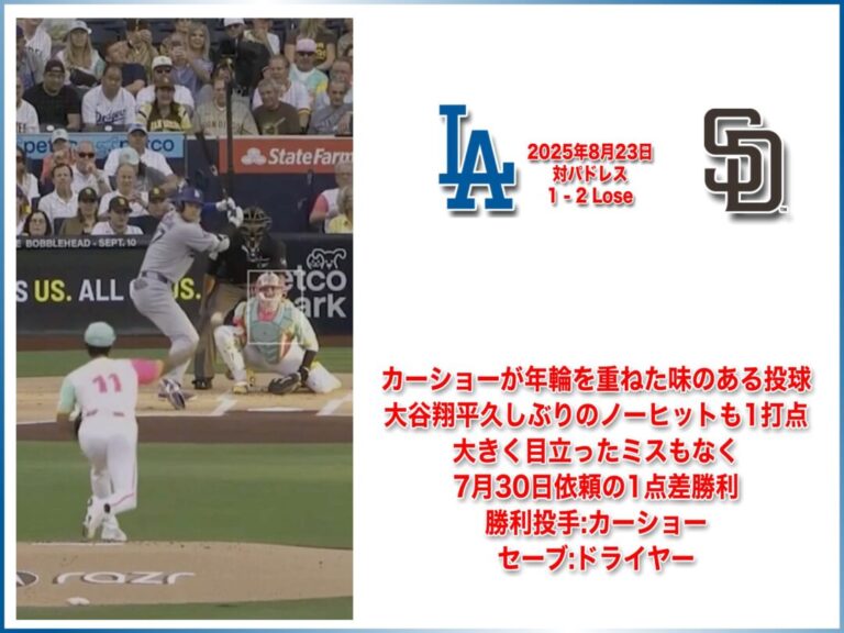 NATIONAL LEAGUE 2025年8月23日 サンディエゴパドレス戦 1-2 Lose