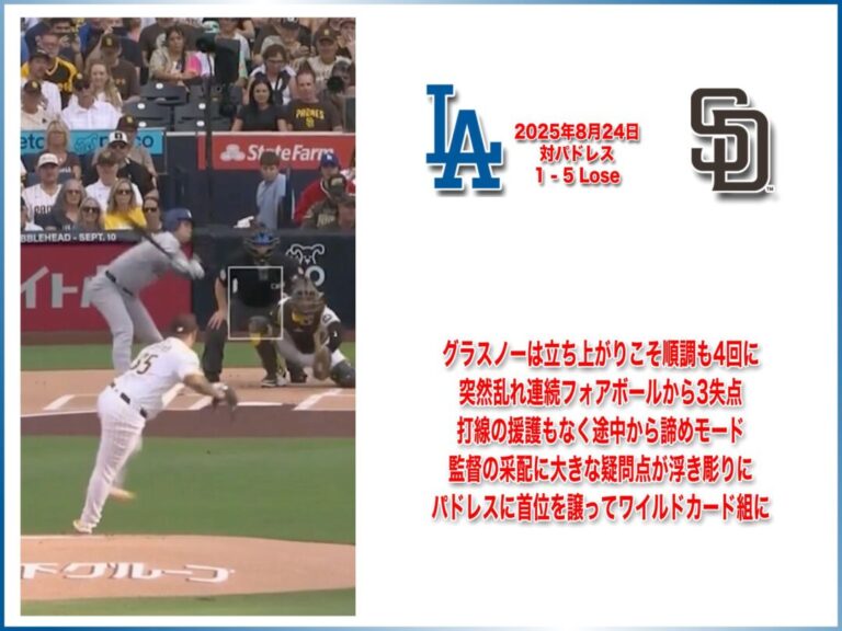NATIONAL LEAGUE 2025年8月24日 サンディエゴパドレス戦 1-5 Lose