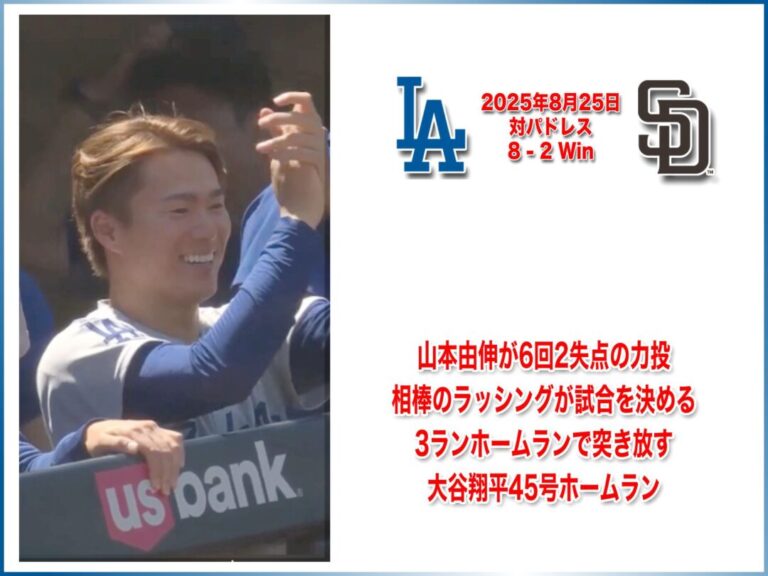 NATIONAL LEAGUE 2025年8月25日 サンディエゴパドレス戦 8-2 Win