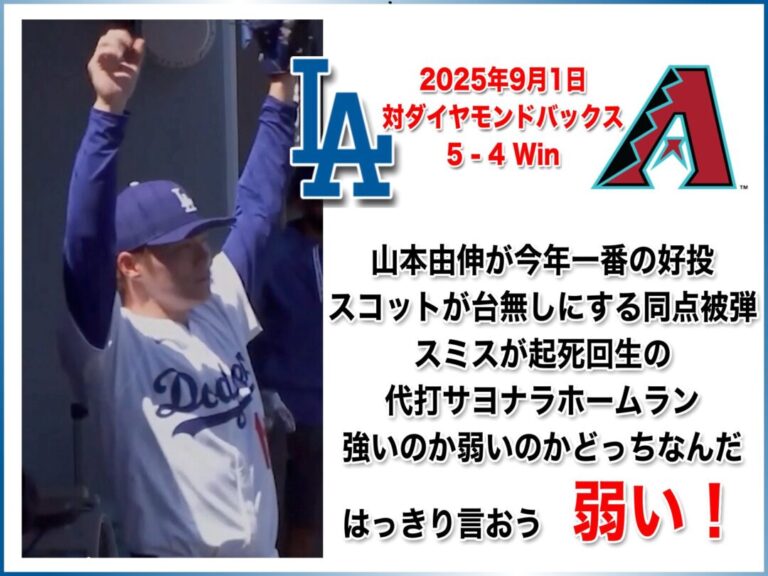 NATIONAL LEAGUE 2025年9月1日 アリゾナダイヤモンドバックス戦 5-4 Win