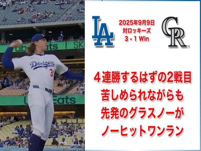 NATIONAL LEAGUE 2025年9月9日 コロラドロッキーズ戦 3-1 Win