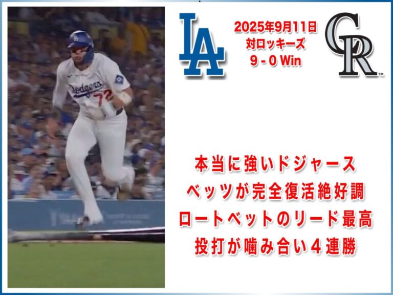 NATIONAL LEAGUE 2025年9月11日 コロラドロッキーズ戦 9-0 Win