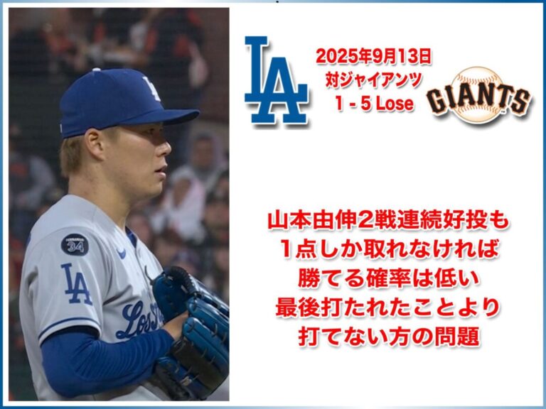 NATIONAL LEAGUE 2025年9月13日 サンフランシスコジャイアンツ戦 1-5 Lose