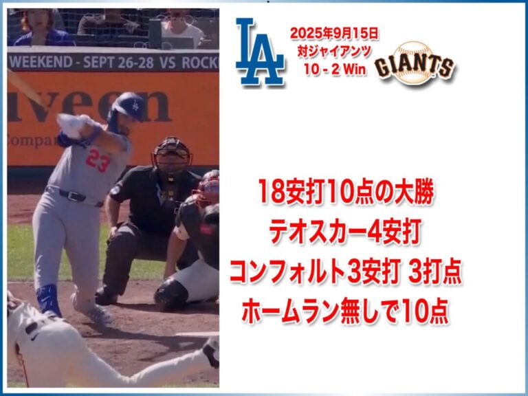 NATIONAL LEAGUE 2025年9月15日 サンフランシスコジャイアンツ戦 10-2 Win