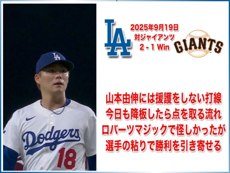 NATIONAL LEAGUE 2025年9月19日 サンフランシスコジャイアンツ戦 2-1 Win