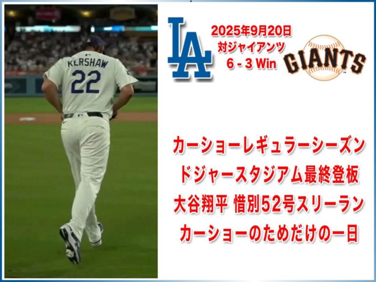 NATIONAL LEAGUE 2025年9月20日 サンフランシスコジャイアンツ戦 6-3 Win