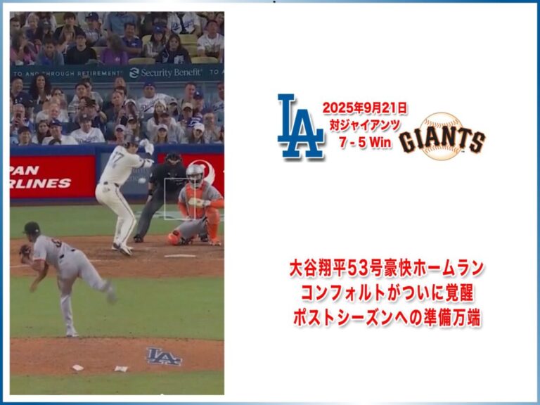 NATIONAL LEAGUE 2025年9月21日 サンフランシスコジャイアンツ戦 7-5 Win