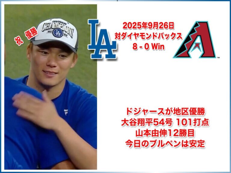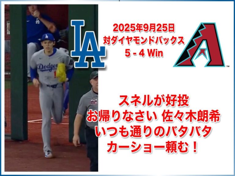 NATIONAL LEAGUE 2025年9月25日 アリゾナダイヤモンドバックス戦 5-4 Win
