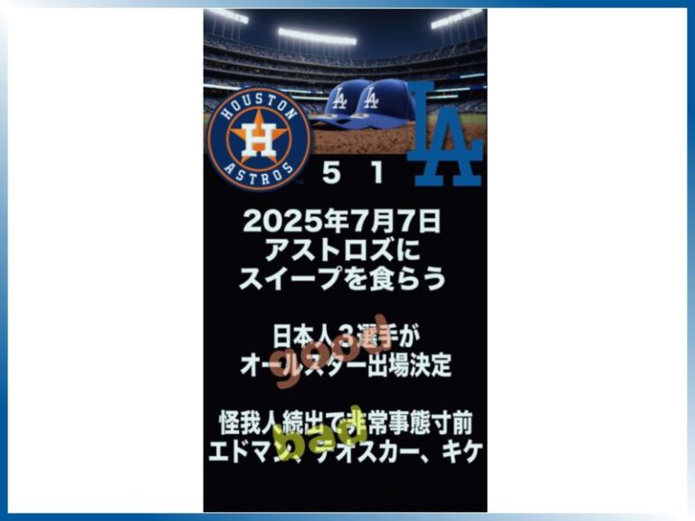 NATIONAL LEAGUE 2025年7月7日 ヒューストンアストロズ戦 1-5 Lose