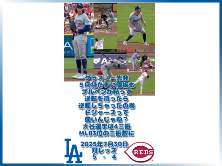 NATIONAL LEAGUE 2025年7月30日 シンシナティレッズ戦 5-4 Win