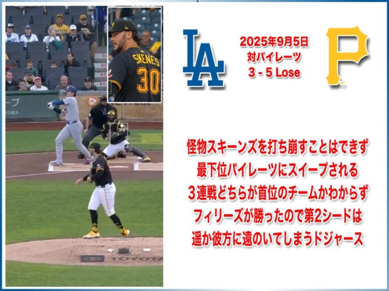 NATIONAL LEAGUE 2025年9月4日 ピッツバーグパイレーツ戦 0-3 Lose