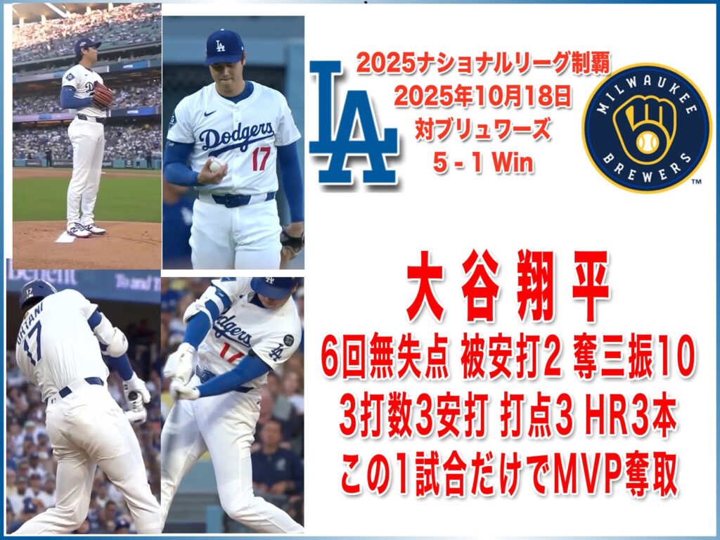 2025年10月18日 NLCSミルウォーキーブリュワーズ戦 5-1 Win