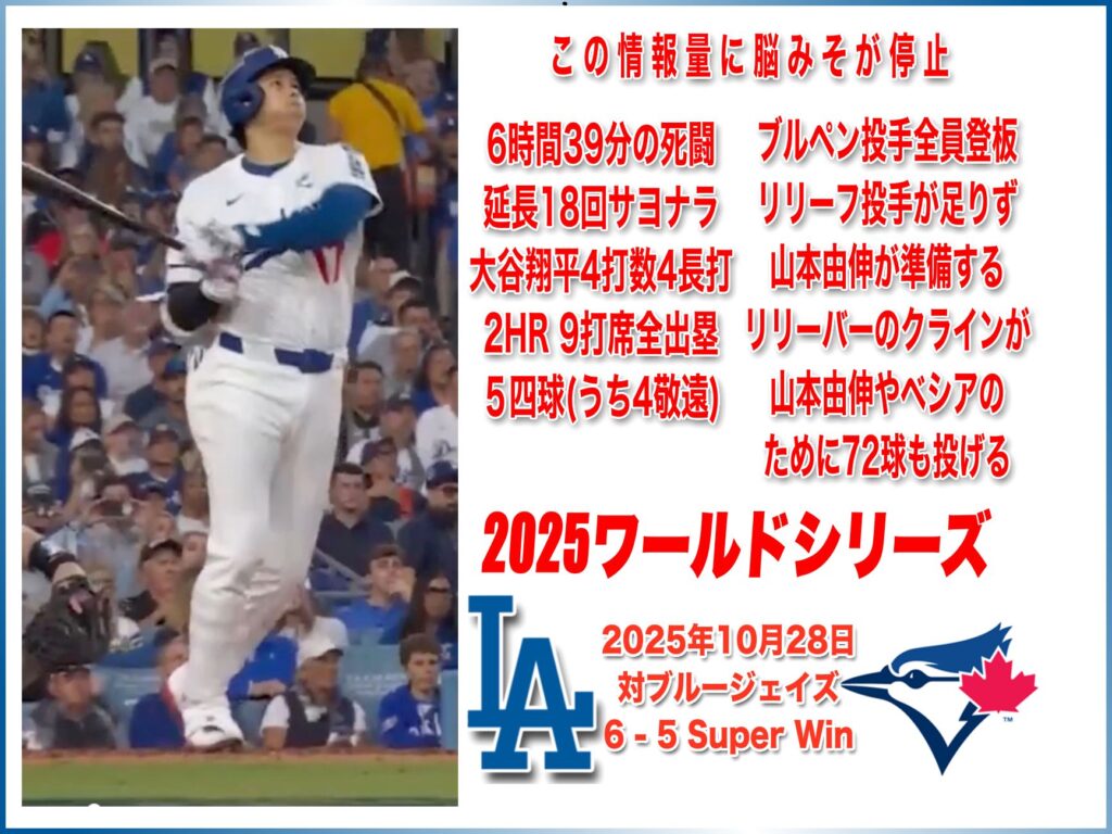 2025年10月28日 WS トロントブルージェイズ戦 6-5 Win