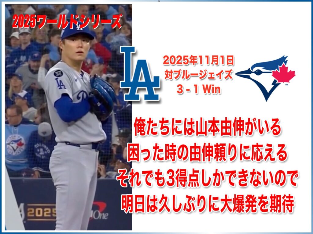 2025年11月1日 WS トロントブルージェイズ戦 3-1 Win